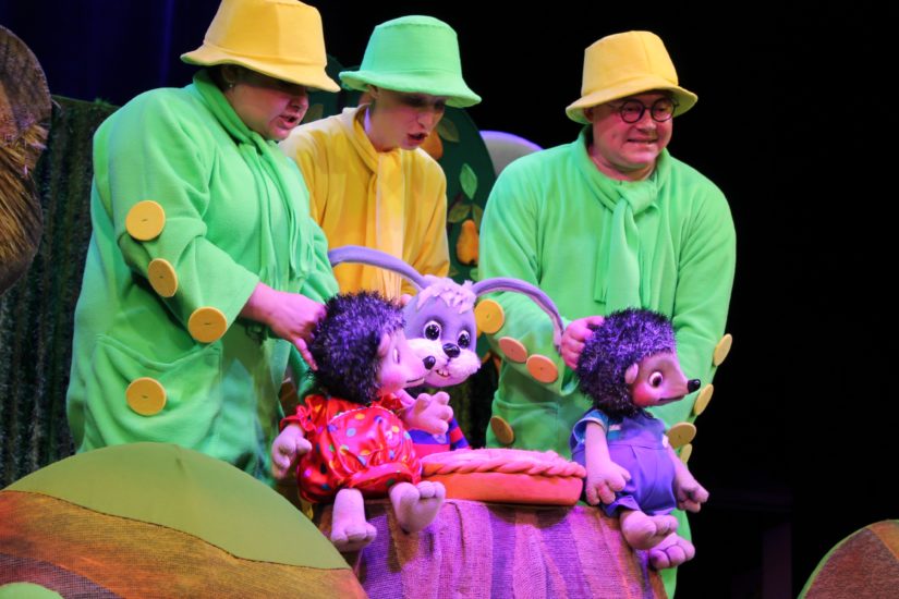 Спектакль красочный , динамичный , игровой и совсем незамысловатым сюжетом. Живет в лесу заяц – грубиян и хвастун. И вот вздумалось ему устроить соревнование по бегу, …с кем бы вы думали? С маленьким неуклюжим ежом. Конечно же, заяц намерен выиграть соревнование, ведь приз за победу назначен. И это не что-нибудь, а вкуснейший в мире пирог с капустой. Только вот ёжик оказался не так-то прост…. Он придумал такое!.. И выиграл необыкновенное состязание. Рекомендуемый возраст детям от 3 лет
