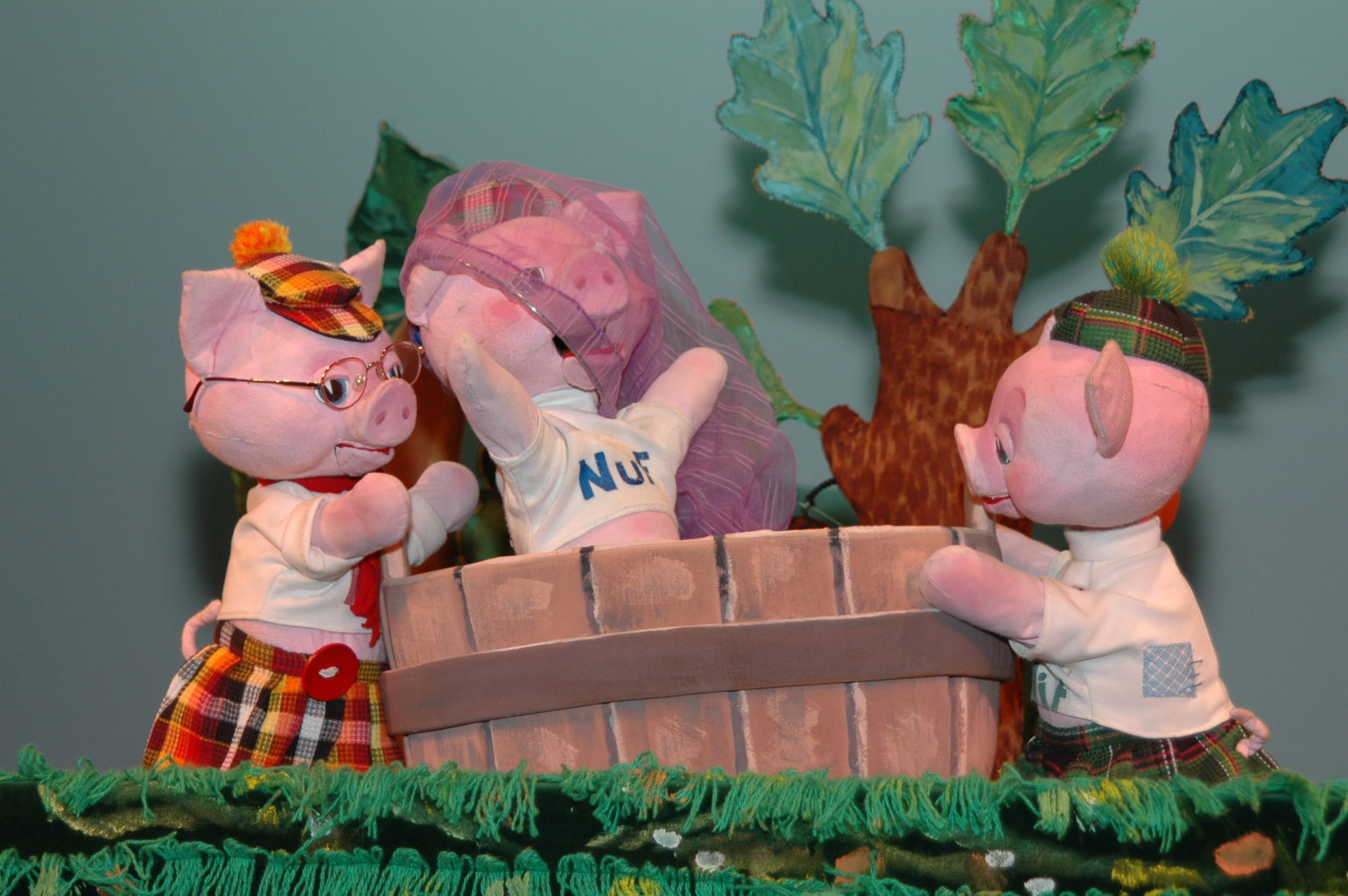 Знакомая всем сказка о трех неунывающих поросятах, строящих свой дом. У каждого поросенка свой подход к тому , из чего и как должен быть построен дом. Прав оказывается тот, чей дом получился самым крепким и надежным. И только дом, построенный основательно и с любовью, способен защитить от зубастого волка и других неприятностей. В спектакле много музыки и песен.