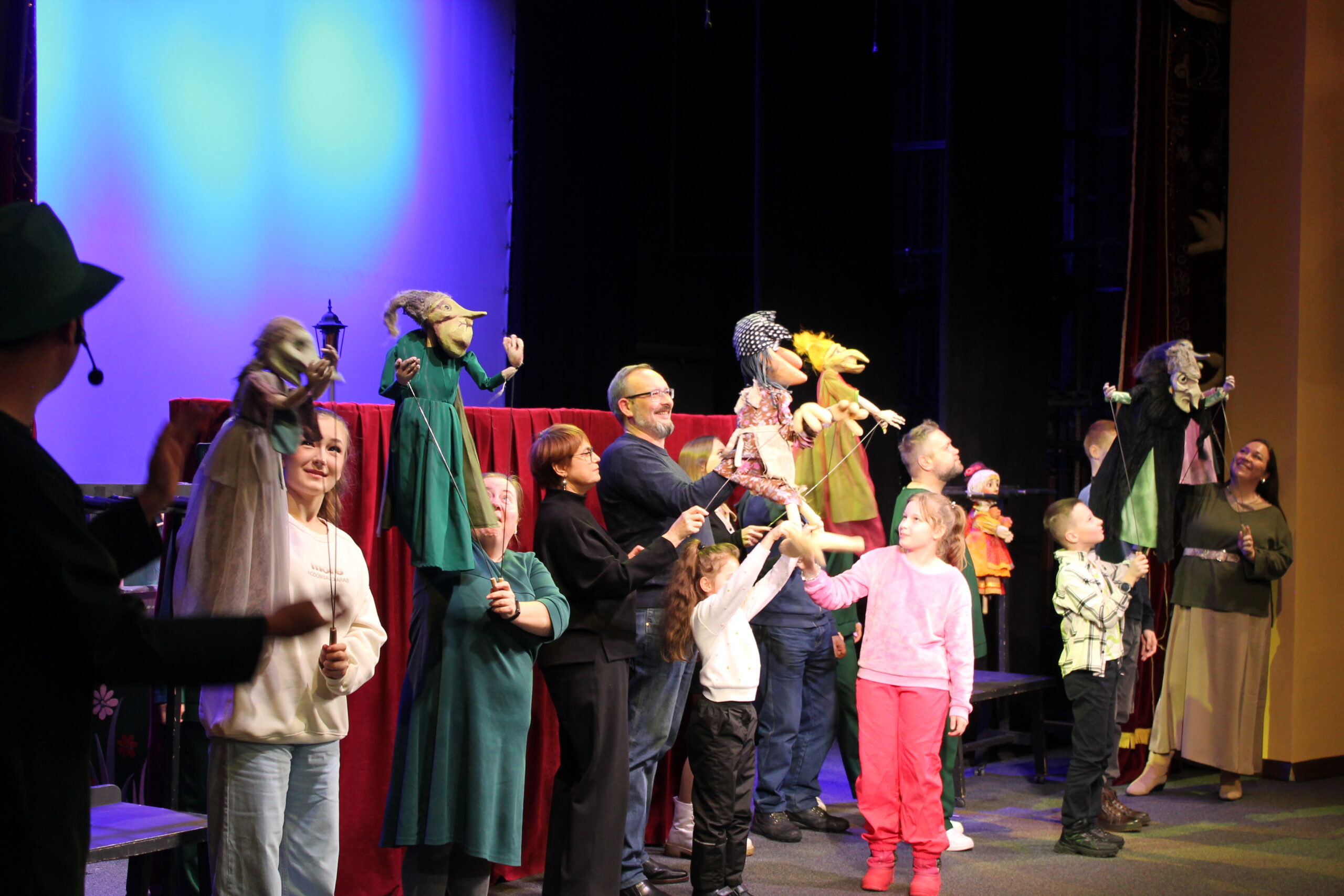 В Рыбинском театре кукол прошла «Ночь с куклами». И как говорят сами зрители, с ними случилось настоящее волшебство в стенах театра кукол! Сначала был фильм об истории появления театра кукол в Рыбинске и о тех, кто создавал, поднимал и развивал этот вид искусства в городе, показали в фильме и «закулисье»- работу всех тех, кто участвует в создании спектаклей, но зритель их не видит. Затем рассказывали про виды кукол. Оказывается их так много, и все такие разные! И все уникальные. А некоторым зрителям повезло и они поучаствовали в мастер-классе от артистов — кукловодов, да и сами смогли «покукловодить». Первая часть закончилась награждением. Засл. арт. РФ Котову, Н.Б. и засл. арт. РФ Демидову О.И. поблагодарили за верное служение театру кукол- 45 лет, а засл. деятеля искусств РФ гл. режиссера театра кукол Быкова А.В. за большой вклад в развитие театра кукол на протяжении 35 лет его работы. В антракте для зрителей были подготовлены фотозоны из спектаклей театра кукол.