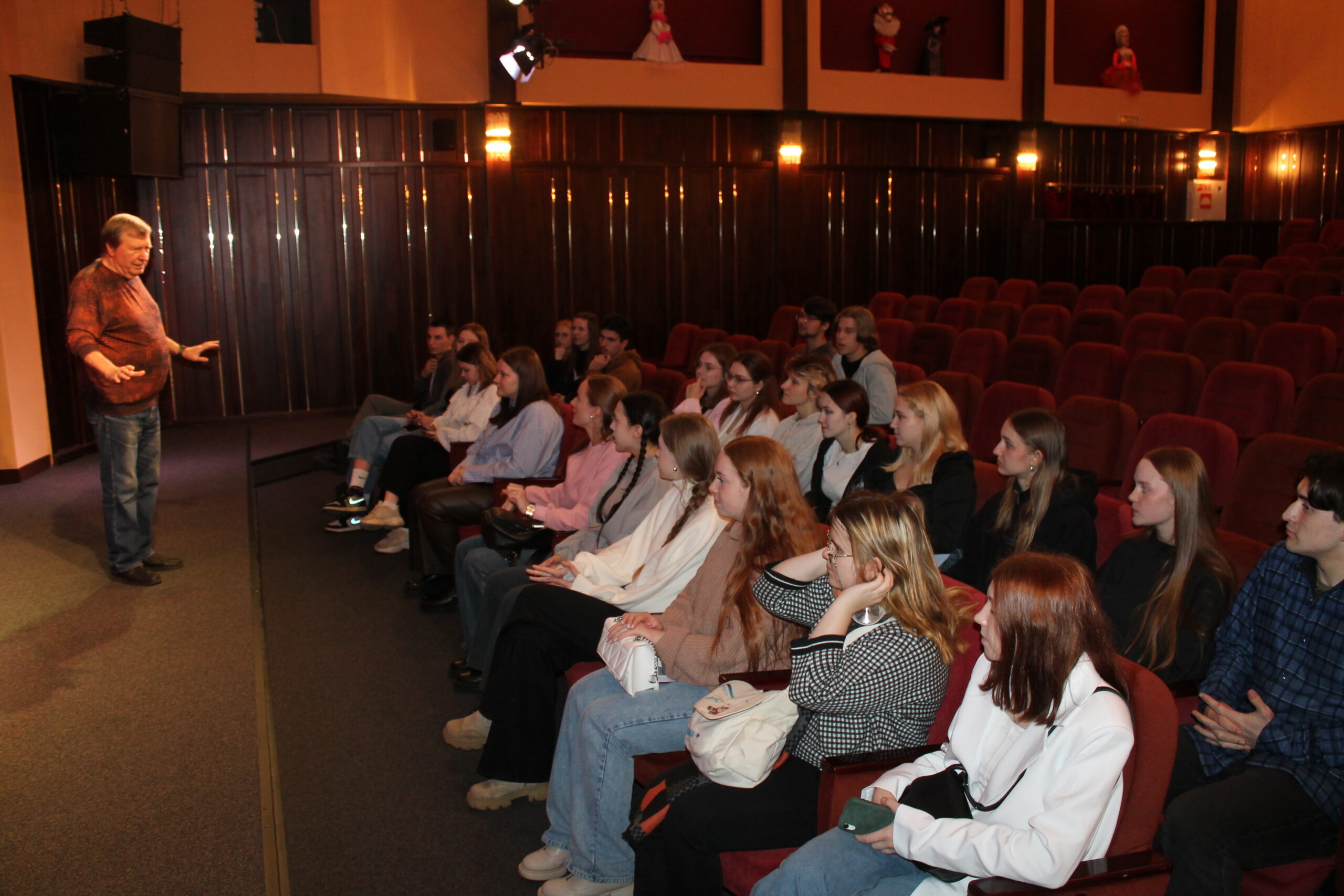 21 ноября Рыбинский театр кукол принимал студентов Костромского и Ярославского областных колледжей культуры.Студенты посетили наш город в рамках профориентационного проекта «Рыбинск-город возможностей», который направлен на профессиональное самоопределение и знакомство молодежи Ярославской области с возможностью трудоустройства в Рыбинске. Директор театра кукол Иванова Е.А. познакомила гостей с историей и работой театра. Артисты театра кукол провели театральный мастер- класс, а затем гл. режиссер театра, засл. деятель искусств РФ А.В.Быков и артисты театра пообщались с молодежью и ответили на профессиональные вопросы об артистах -кукловодах и их работе. Встреча прошла интересно и познавательно. Надеемся на дальнейшее сотрудничество в рамках проекта.