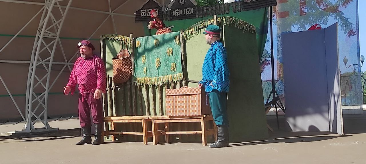 В рамках проекта «Ярославское лето» в Волжском парке, на балюстраде артисты Рыбинского театра кукол радовали зрителей спектаклем «Курочка Ряба»(0+) и далее мастер-классом для больших и маленьких жителей Пошехонья