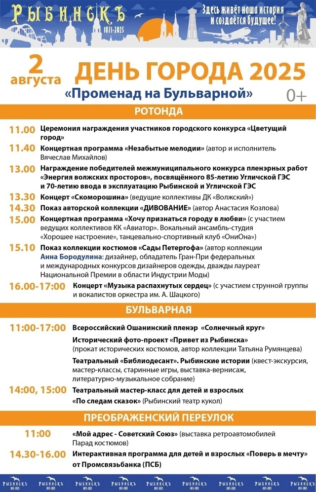 2 августа город Рыбинск отмечал День Рождения! По сложившейся традиции, в День города, артисты Рыбинского театра кукол для гостей и жителей города показывали театральный мастер -класс, который прошёл на ул. Бульварной. Поздравляем наш любимый город и желаем ему процветания. На площади Дворца спорта «Полет» прошел «ПАРАД-РЕКОРД». В этом зрелищном мероприятии приняли участие спортсмены, деятели культуры, студенты, работающая молодежь, образовательные учреждения, учреждения культуры. Все те, кто прославляет наш город , кто покоряет вершины спорта и творчества. В «Парад-рекорде» принял участие и Рыбинский театр кукол-участник Международных, региональных и областных фестивалей и конкурсов.