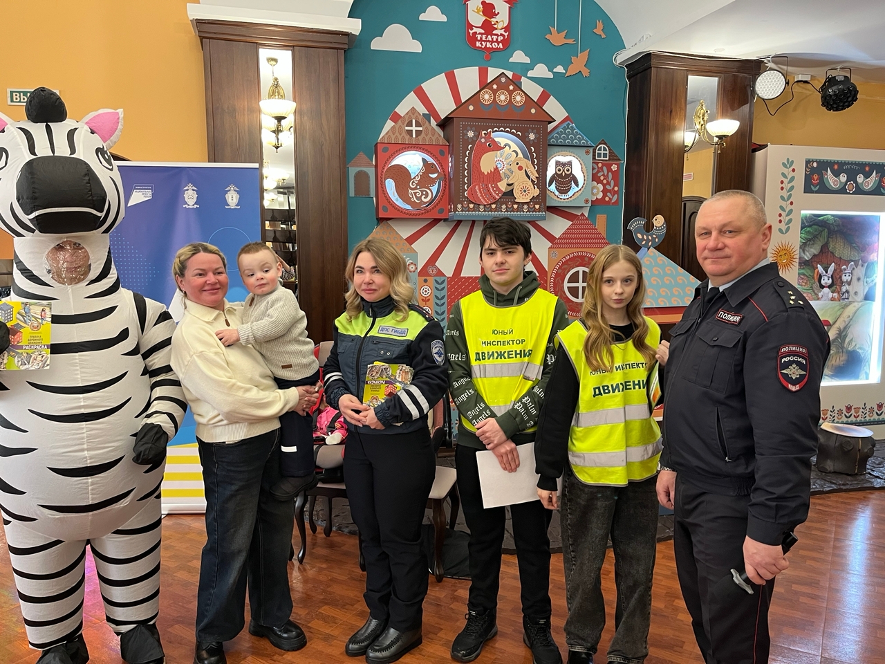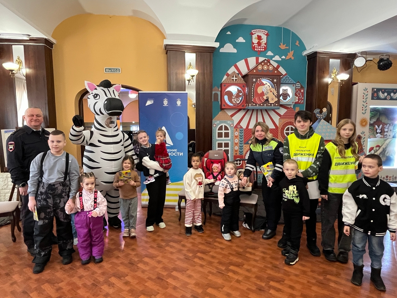 В конце января в Рыбинском театре кукол сотрудники Госавтоинспекции Минеев Сергей Борисович, Дёмина Вера Вячеславовна, Завъялова Любовь Владимировна провели акцию «Ребенок — главный пассажир»и напомнили зрителям театра о правилах дорожного движения. Особое внимание было уделено безопасности самых юных участников дорожного движения.