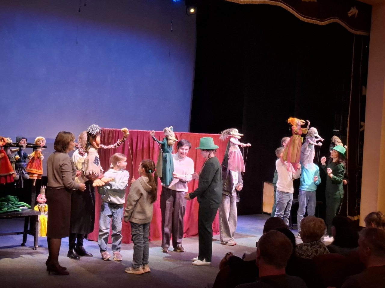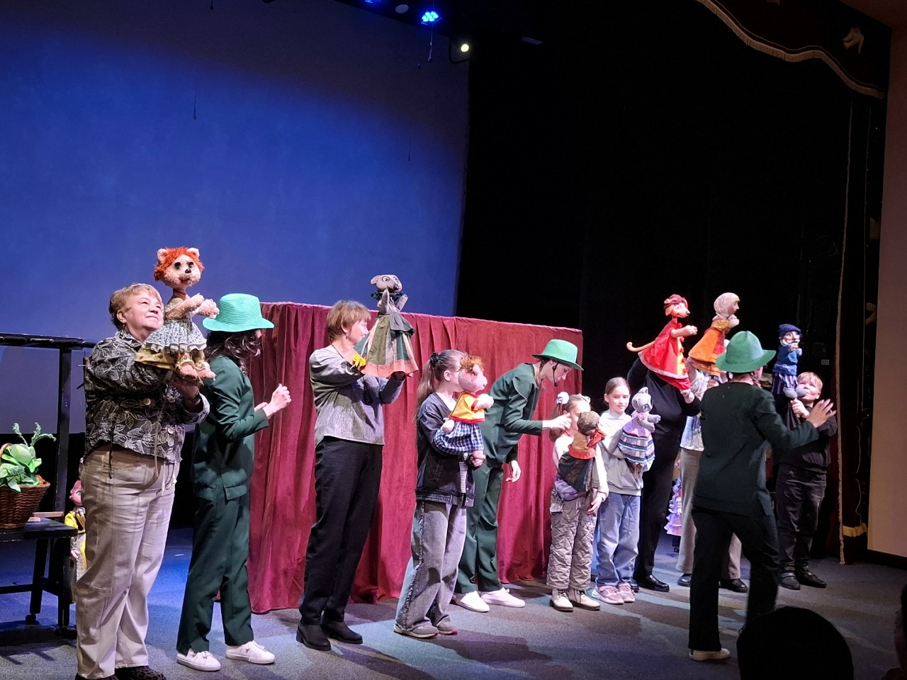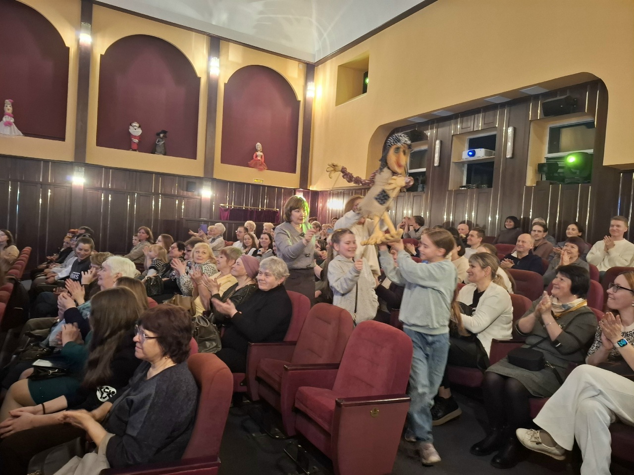 В зале царила особая атмосфера: сначала состоялся мастер‑класс «Я и ты — мы все артисты!». Артисты‑кукловоды щедро делились секретами мастерства: показывали разные кукольные системы, а зрители на мгновение становились настоящими кукольниками!
