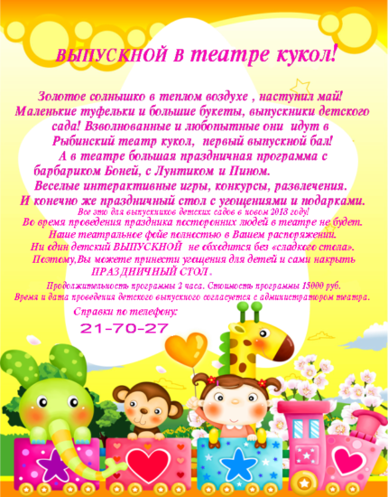 Театр принимает заявки на проведение детского праздника для выпускников детского сада-2018.