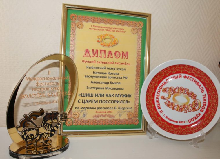 Победителей объявили в шести фестивальных номинациях . Среди победителей и Рыбинский театр кукол : «Лучший актерский ансамбль» — заслуженная артистка РФ Наталья Котова, Александр Быков, Екатерина Мясоедова, спектакль «Шиш, или Как мужик с царем поссорился».