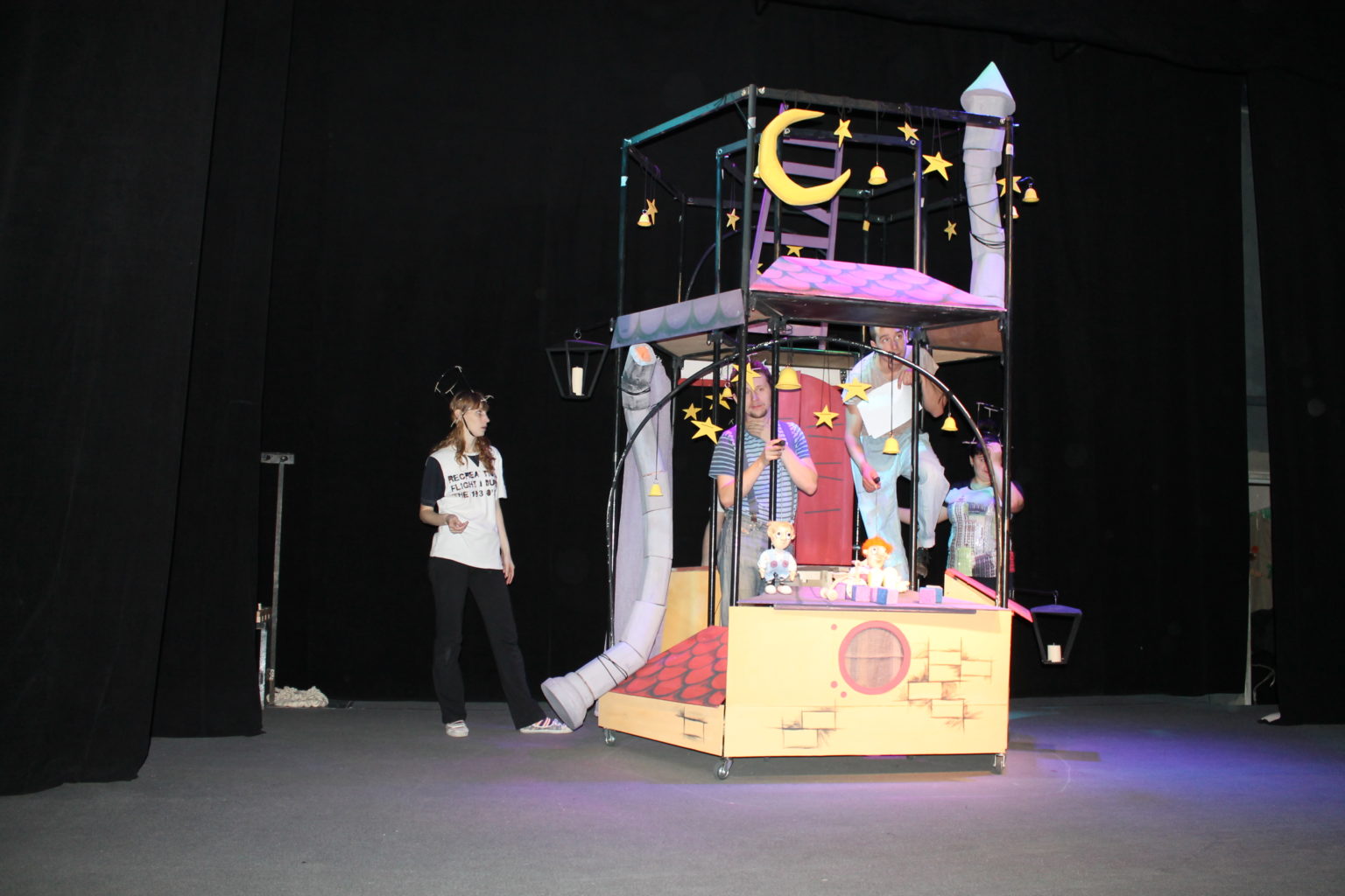 Сейчас проходят репетиции на сцене и последние доработки кукол и декораций.