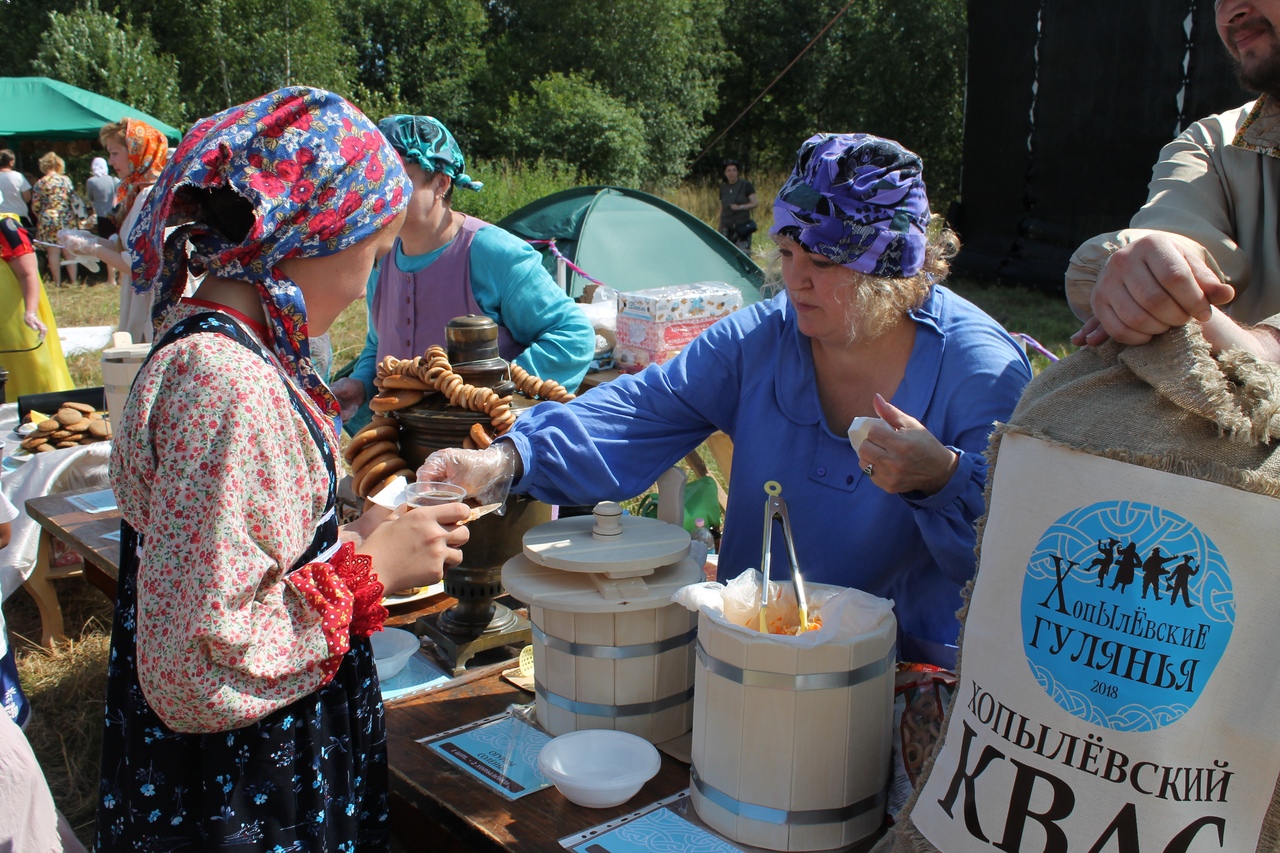 Одно из самых ярких событий фестиваля — хопылёвские гуляния. В каждом большом селе средней полосы России были ярмарки, которые проводились после церковных праздников. В Хопылёво она проходила летом. Селяне продавали всё, что осталось с зимы — от огурцов до валенок.