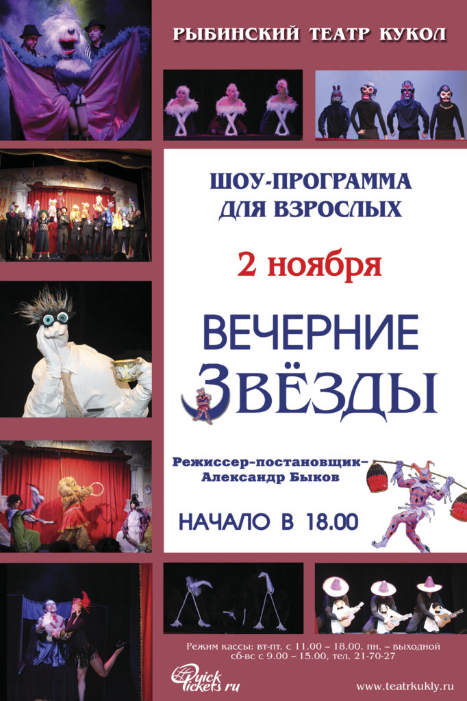2 ноября в 18 часов состоится шоу- программа для взрослых «ВЕЧЕРНИЕ ЗВЕЗДЫ» 18+.