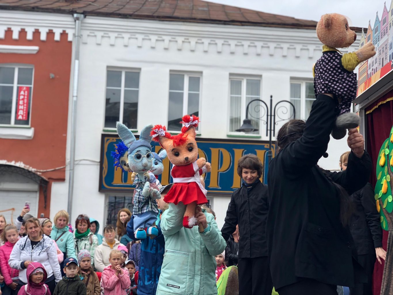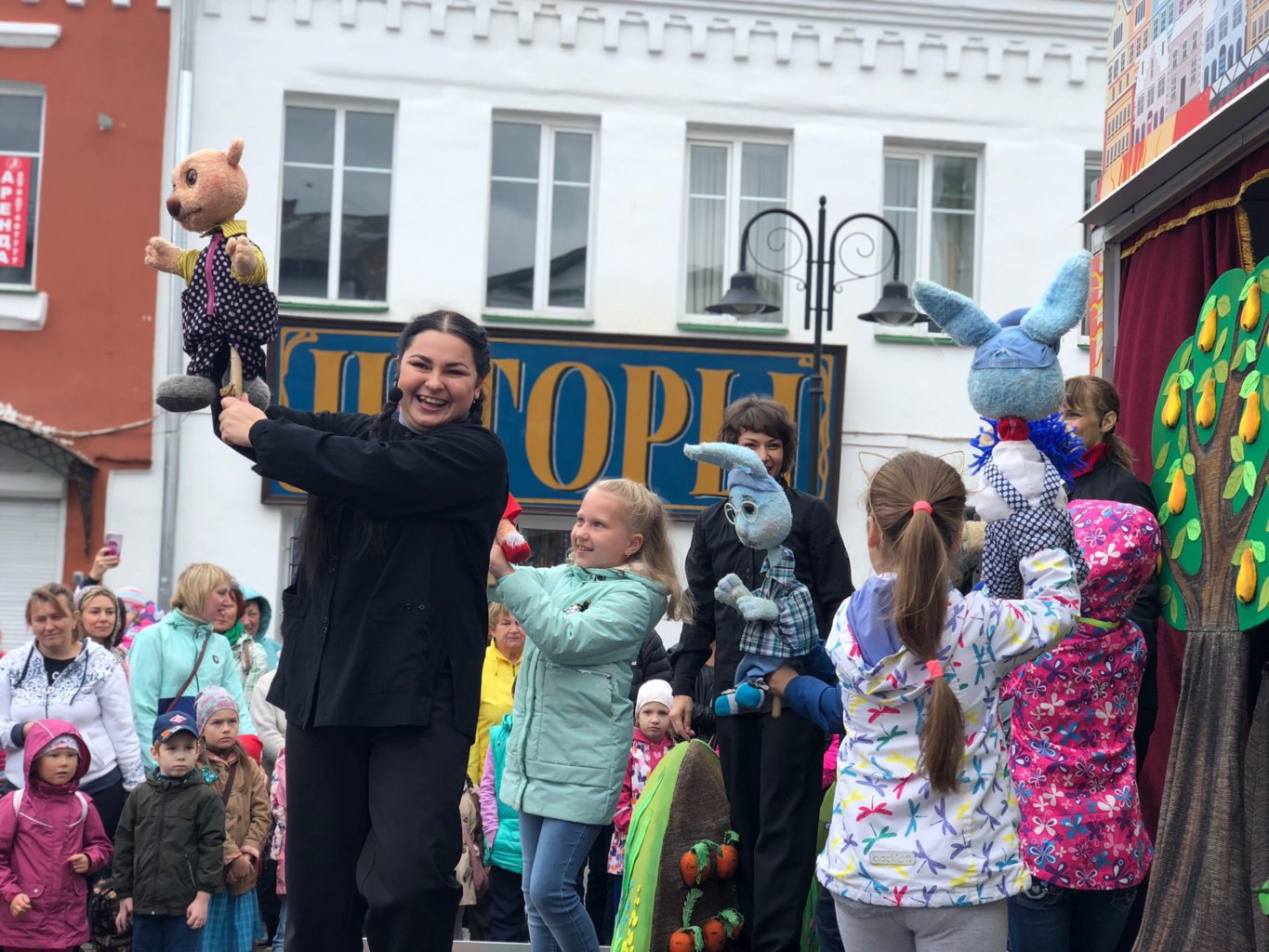 3 августа в ДЕНЬ ГОРОДА РЫБИНСКИЙ ТЕАТР КУКОЛ показал на ул. Стоялой юным зрителям праздничное представление «Куклы как люди»