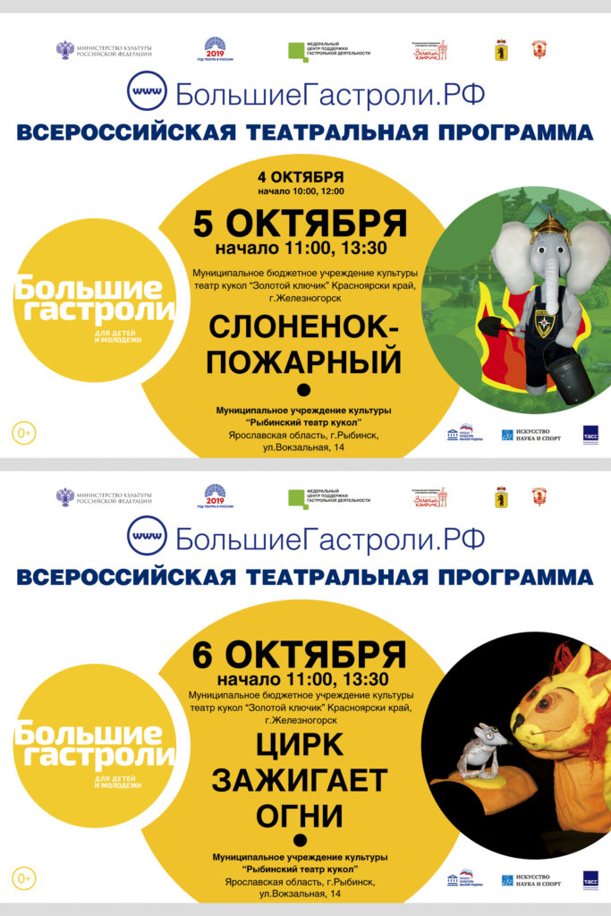 ГАСТРОЛИ ТЕАТРА КУКОЛ «ЗОЛОТОЙ КЛЮЧИК» г. Железногорск (Красноярский край) в Рыбинском театре кукол в рамках общероссийской программы «Большие гастроли для детей и молодежи».