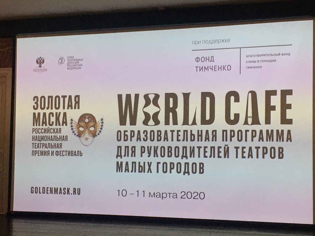 Фестиваль российской национальной театральной премии «Золотая маска» во второй раз организует в Москве круглый стол театров малых городов, который проходит 10-11 марта в новом пространстве Государственного театра наций. В дискуссии принимают участие представители театральной общественности из 35 российских городов. Участником круглого стола стала и директор МУК «Рыбинский театр кукол» Е.А.Иванова.