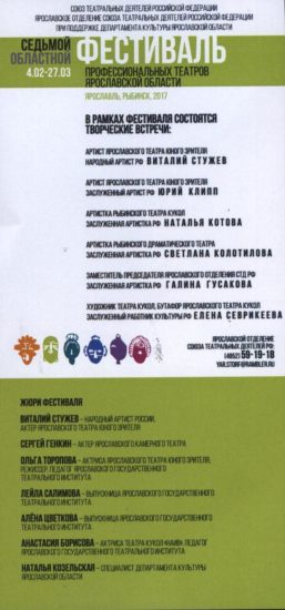4 февраля стартовал VII Областной фестиваль профессиональных театров Ярославской области. Этот совместный проект Ярославского отделения Союза театральных деятелей РФ и Департамента культуры Ярославской области существует с 2010 года. В фестивале этого года принимают участие семь профессиональных театров Ярославля и Рыбинска, а также Ярославский государственный театральный институт.