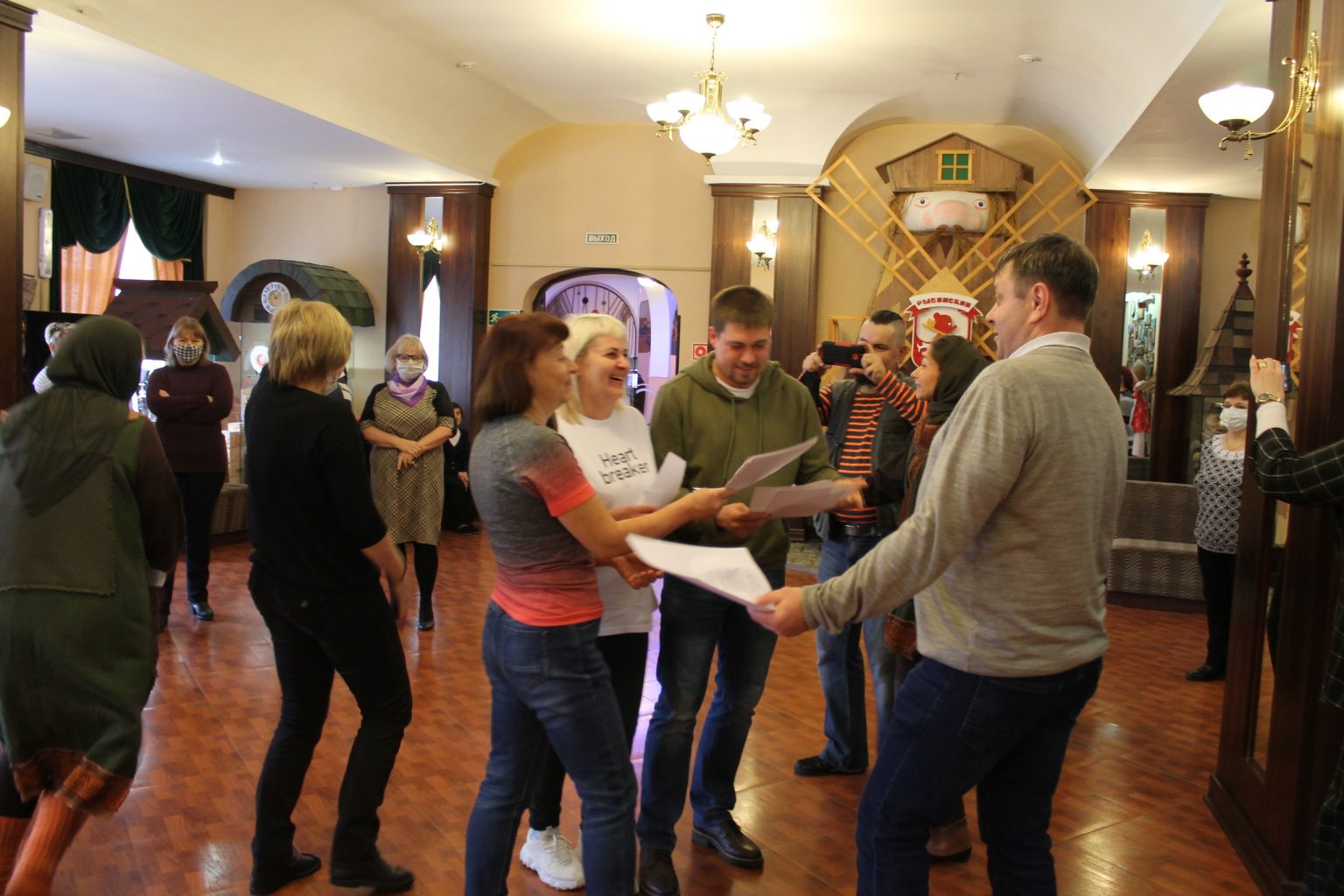 Артисты нашего театра — Д.Смирнов, О.Волобуева и А.Васильева подготовили творческую встречу с шутками, прибаутками и лотереей,где каждый смолянин получил рыбинский подарочек. Директор Рыбинского театра кукол Иванова Е.А. и директор Смоленского областного театра кукол Павлова Е.В. обменялись благодарственными письмами и презентами. А рыбинцы уже вечером увидят сп. «Клочки по закоулочкам.» Впереди ещё два дня гастролей. Приглашаем на спектакли Смоленского театра кукол 24 и 25 октября!