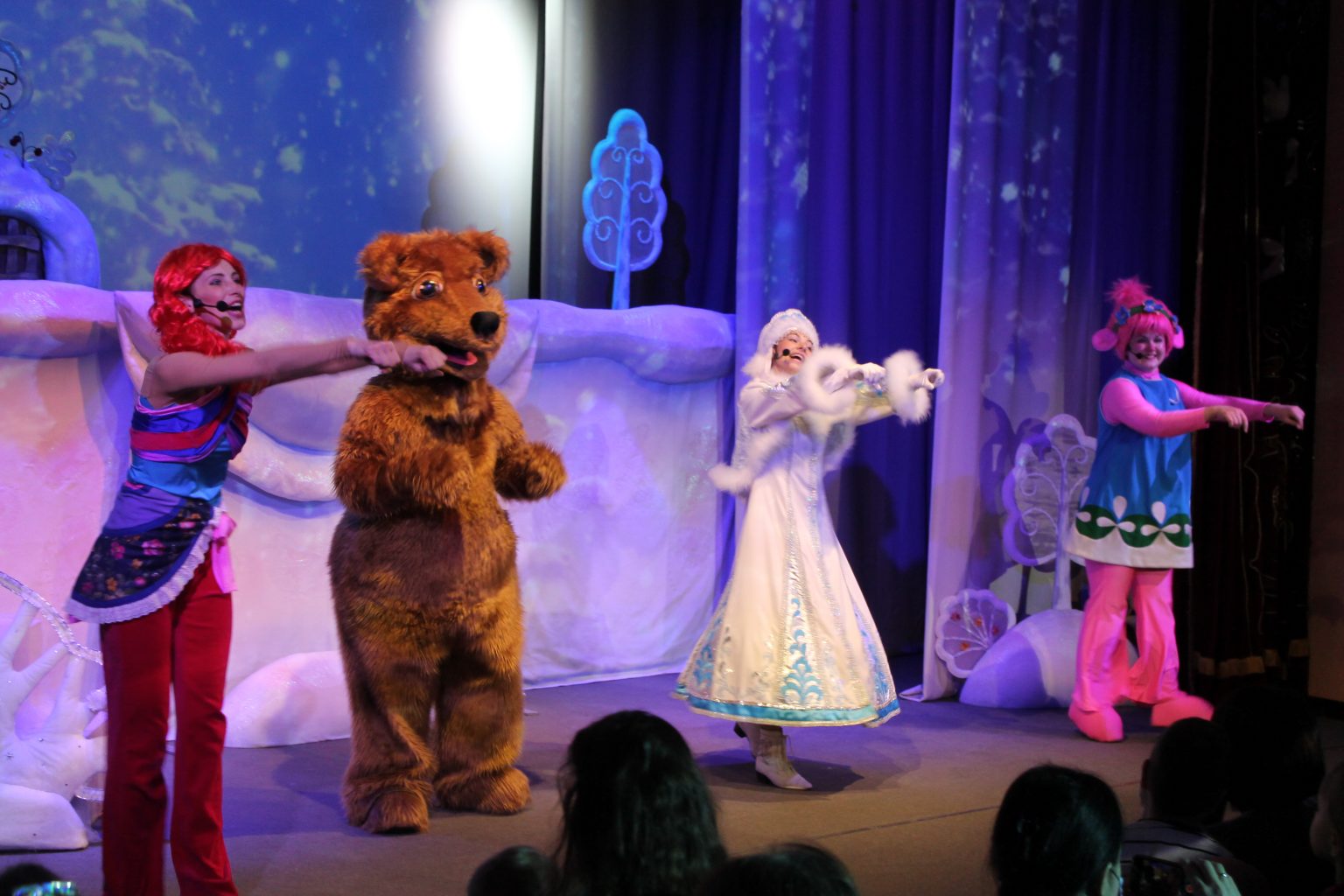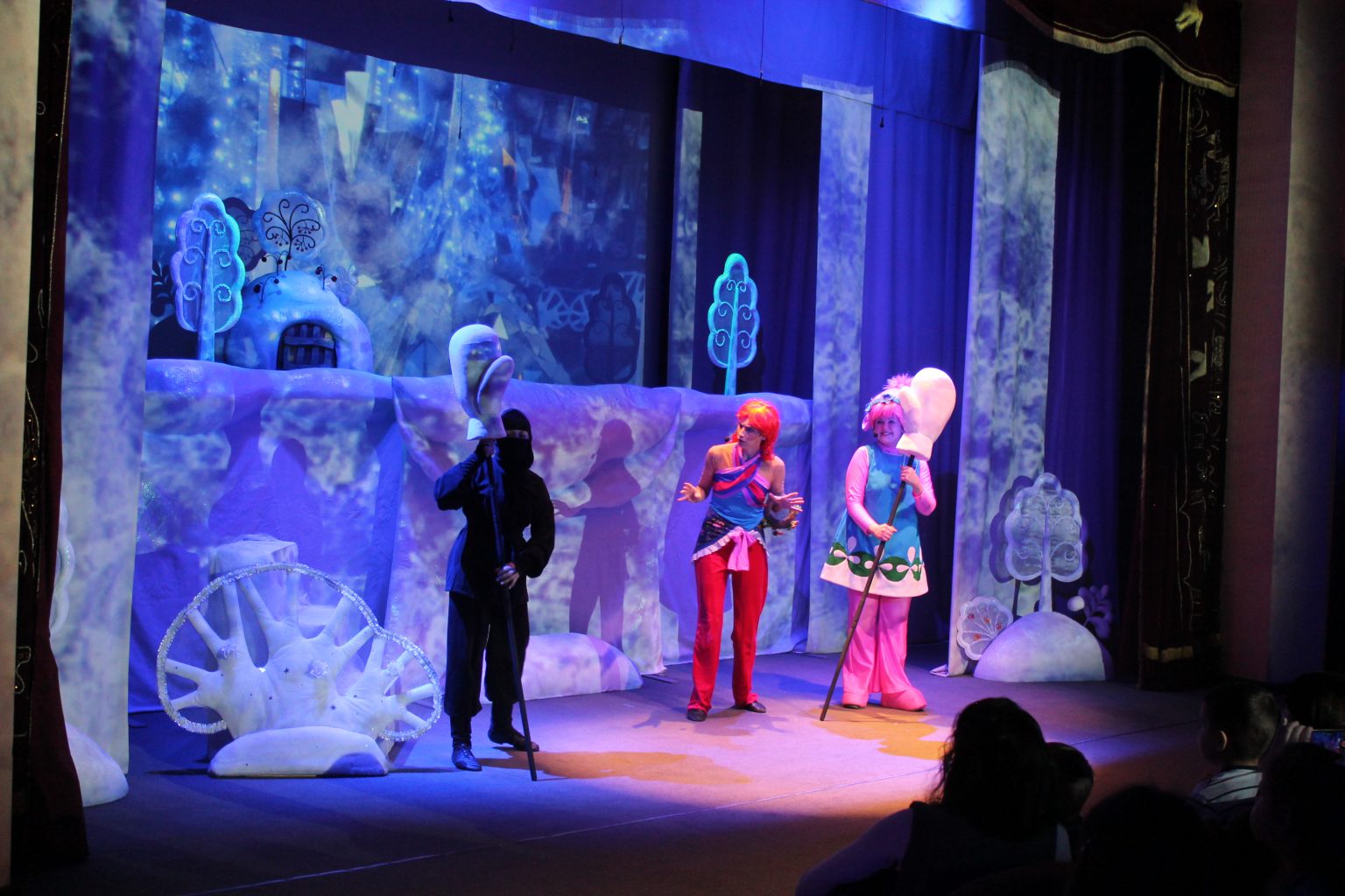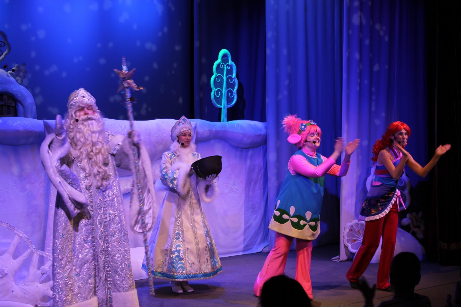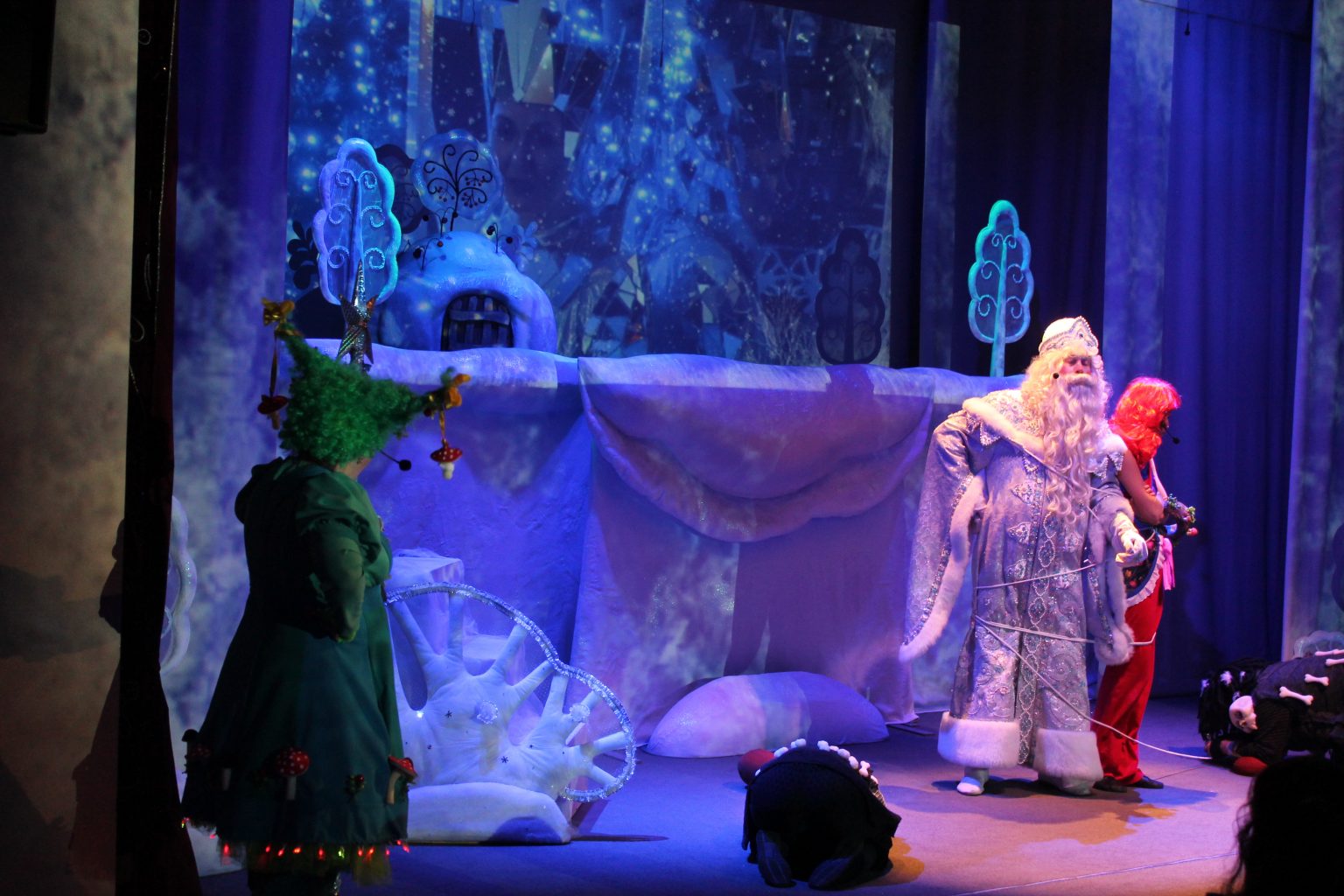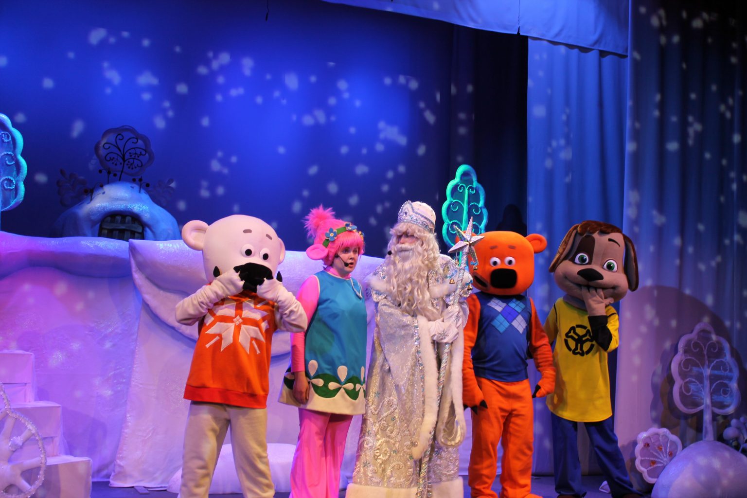 Шоу-представление «Новогодняя Мультпланета -2021» с увлекательными приключениями с самыми знаменитыми мульт -персонажами ХХI века проходили в театре 26,27,31 декабря и со 2 по 8 января 2021 года. Интерактив в зале прошел соблюдением всех санитарных норм. Ребята с Дедом Морозом и Троллем Розочкой прошли « снежные» испытания, чтобы найти волшебное лекарство и излечить от зимней хандры Мишку. А ещё зажечь волшебные огоньки на Главной Ёлке . Проходя все эти испытания , юные зрители встретились с Бабой Ягой- Ядвигой Петровной, Снежной Королевой , Кикиморой и с «нечистой» силой. Все преграды преодолели и с помощью Ниндзя, всю «нечистую силу» победили. А Ниндзя, Снегурочкой обернулась! Веселье, радость, атмосфера дружбы, доброты, и праздничного настроения восторжествовали в зале.