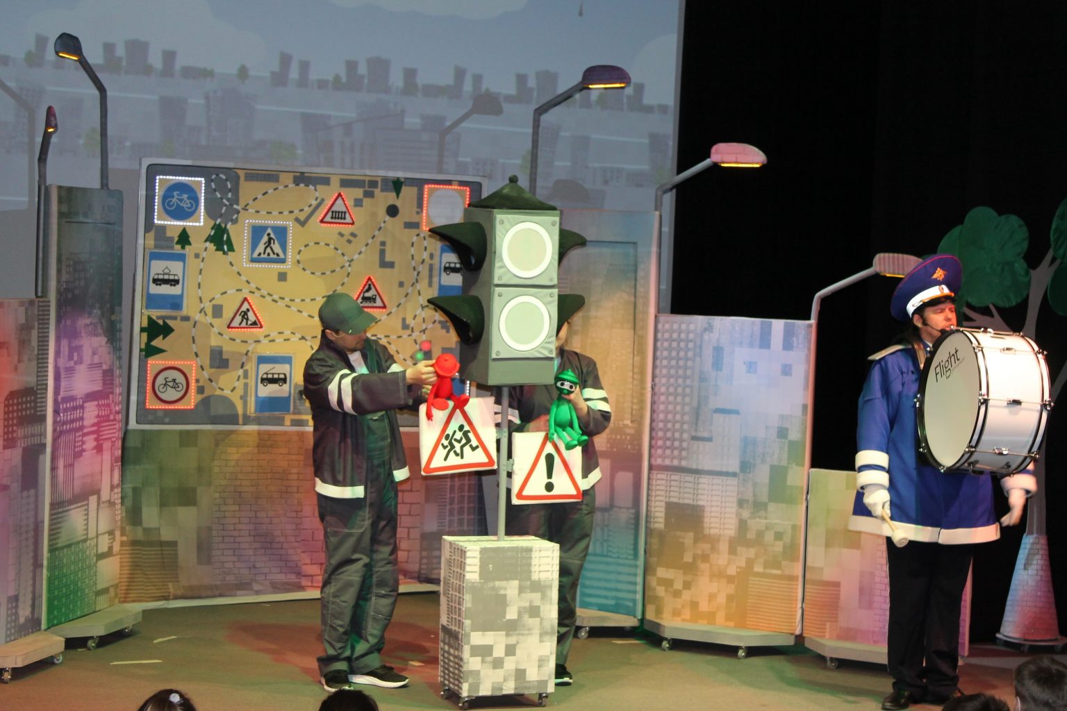 Сегодня в Рыбинском театре кукол в рамках просветительно-образовательного проекта для младших школьников «Безопасность детей на дорогах» прошла встреча с инспектором ГИБДД Минеевым С.Б. и премьерный показ спектакля «В стране дорожных знаков».