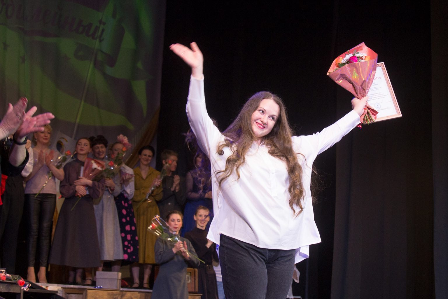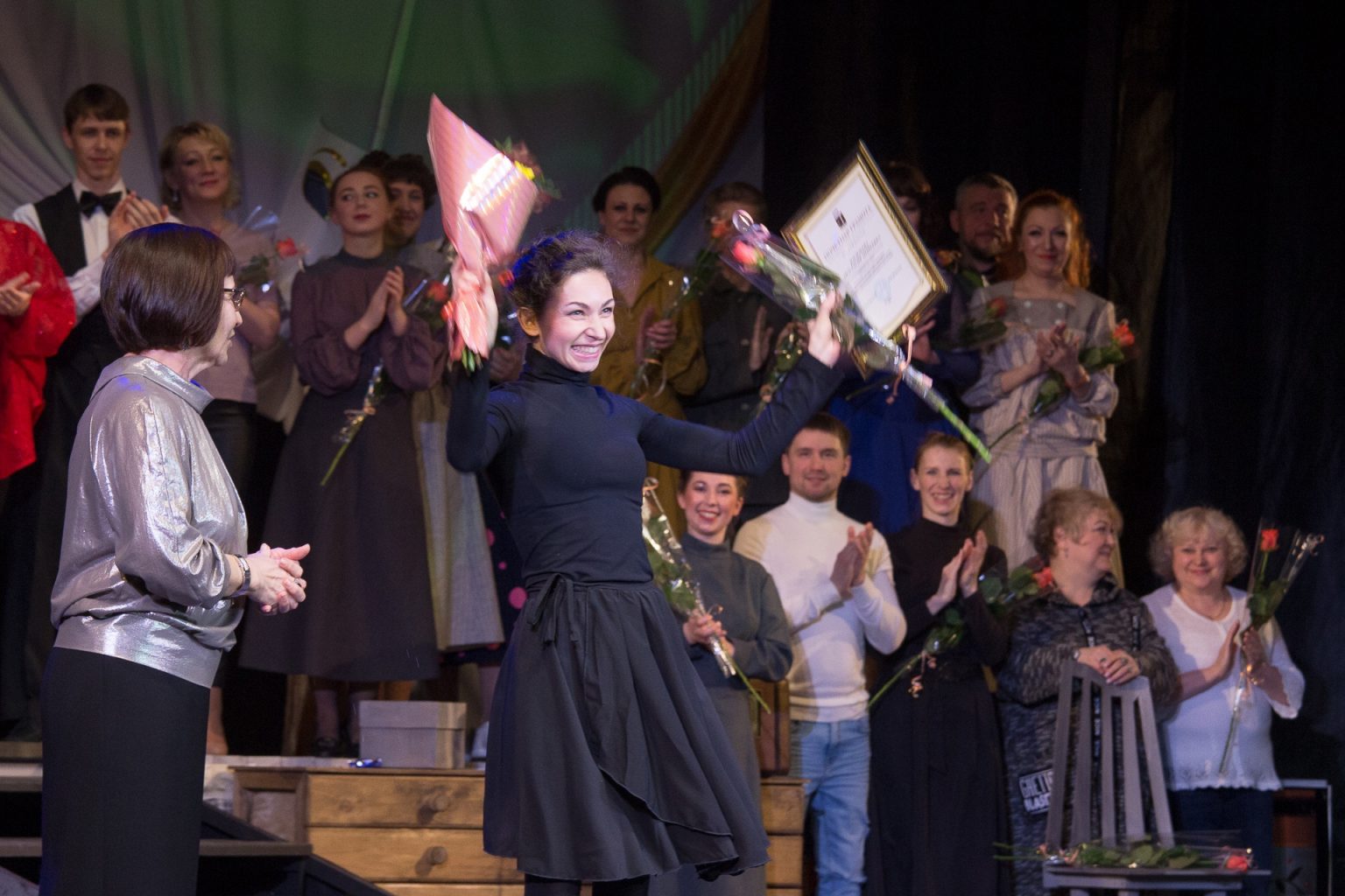 Депутат Ярославской областной Думы Л.Ю. Ушакова вручила премию «За яркий актерский дуэт» артистам Волобуевой Ольге Евгеньевне и Мясоедовой Екатерине Геннадьевне за исполнение ролей в спектакле для самых маленьких «Игрушки» в рамках проекта «Театр на подушках».
