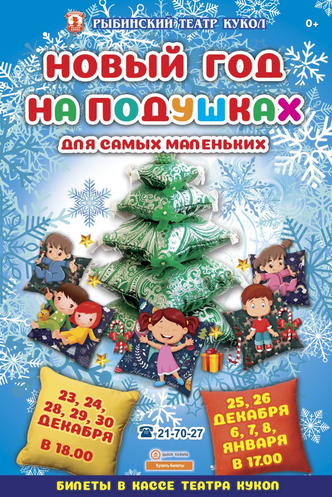 Впервые в Рыбинском театре кукол «НОВЫЙ ГОД НА ПОДУШКАХ» в Малом зале.