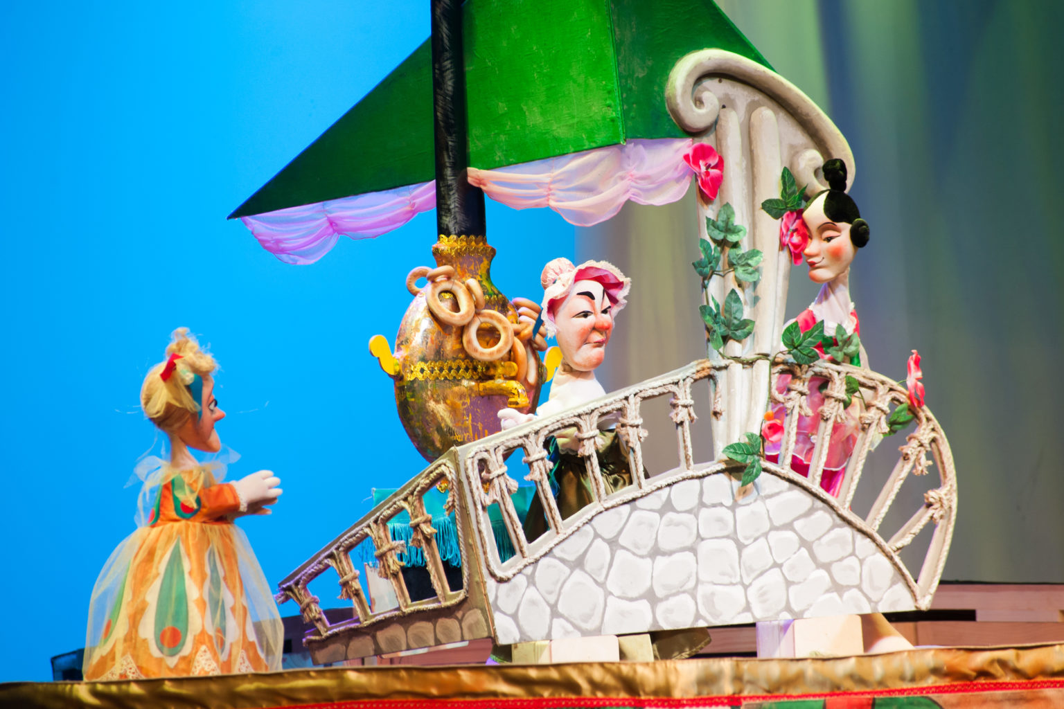Настоящее балаганное представления с куклами. Спектакль про доброго парня, купившего из жалости собаку, кошку, а потом и змею, которая оказалась дочерью волшебного царя. Это история о кольце, которому под силу осуществить любую мечту.