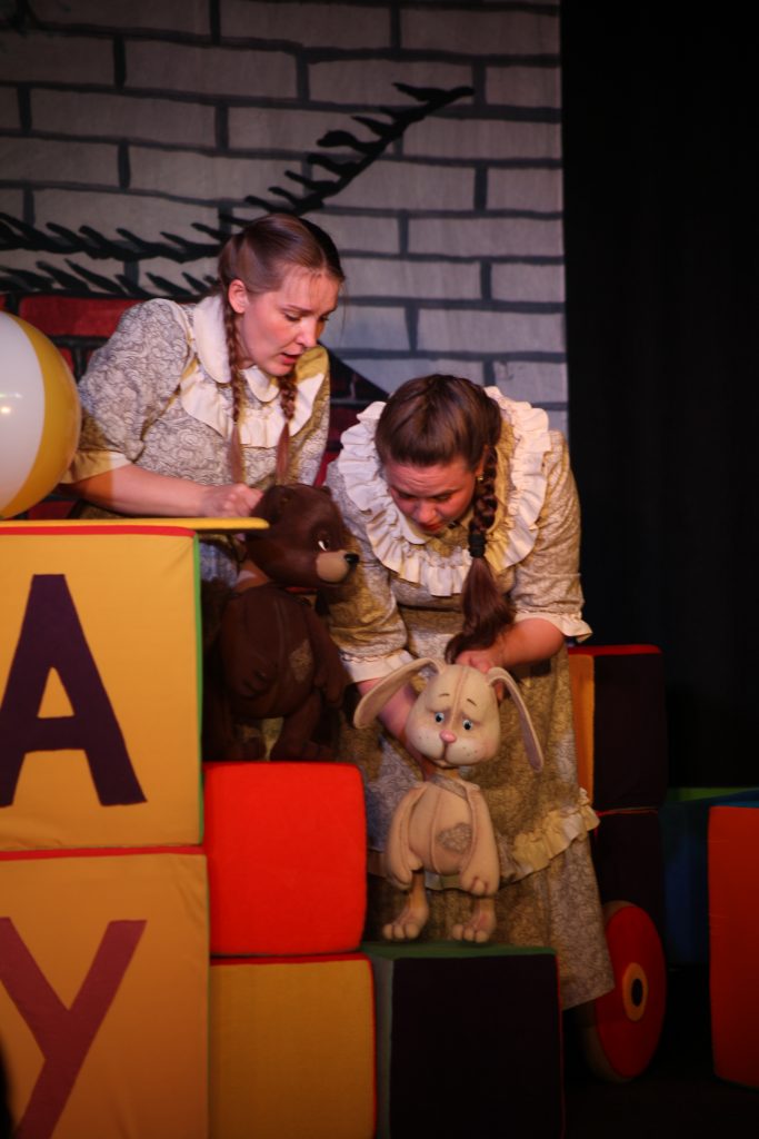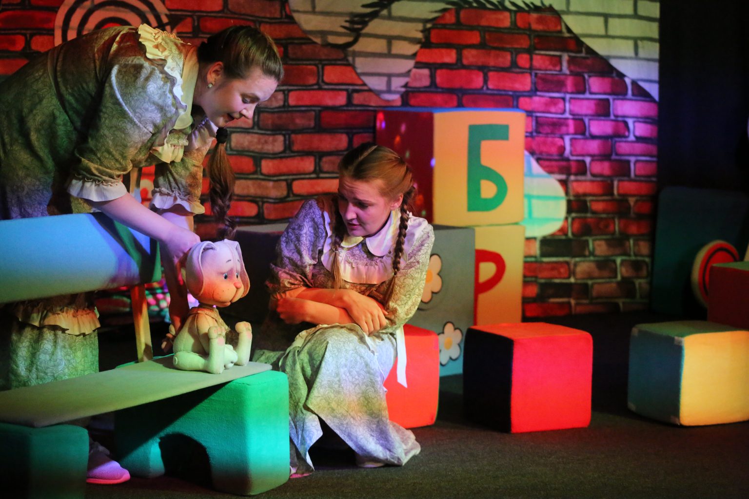 Вообразите, что во время программы «Игрушки» можно лежать на полу, ходить рядом с актерами, строить башню из подушек, прыгать и переживать вслух вместе с родителями. Наши куклы — бычок, слонёнок, зайка, кот , лягушата и даже грузовичок с нетерпением ждут встречи с маленькими зрителями.