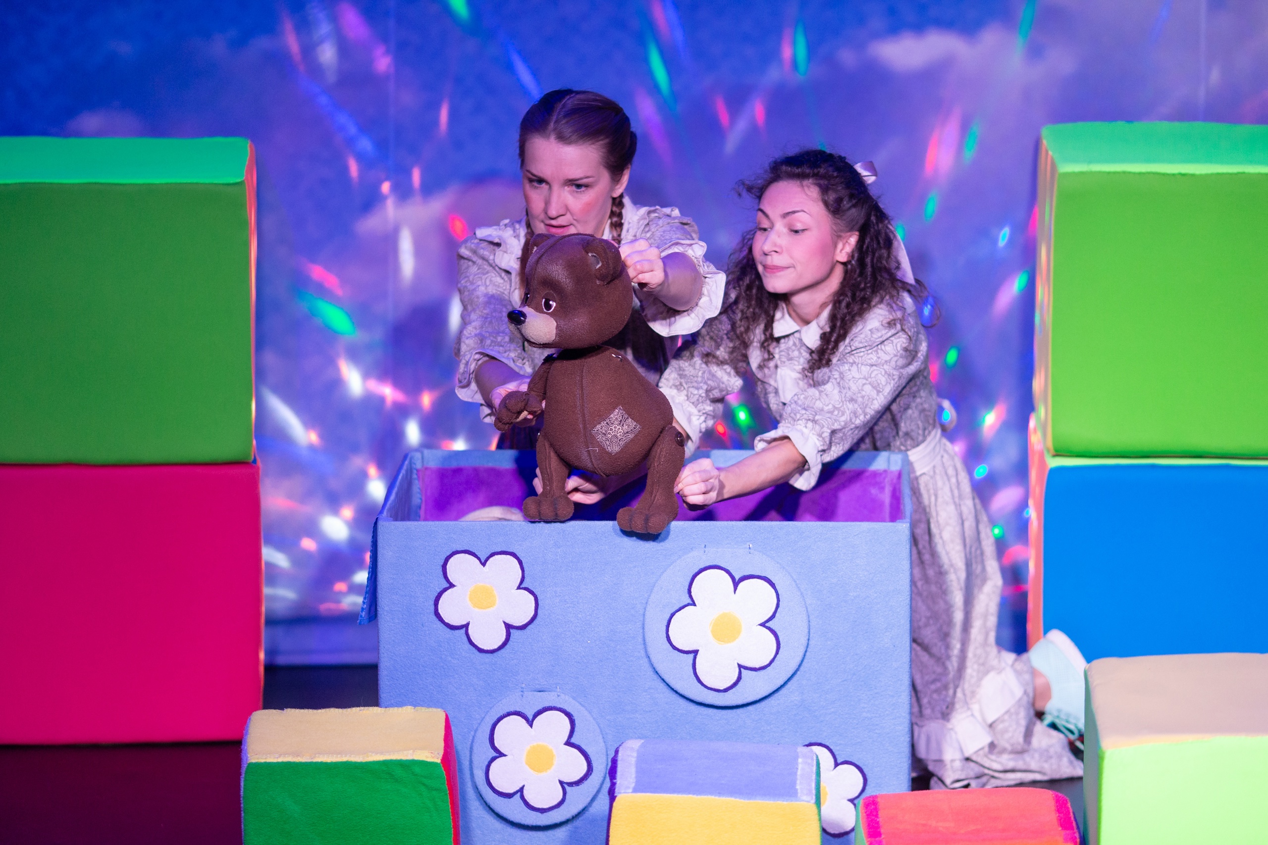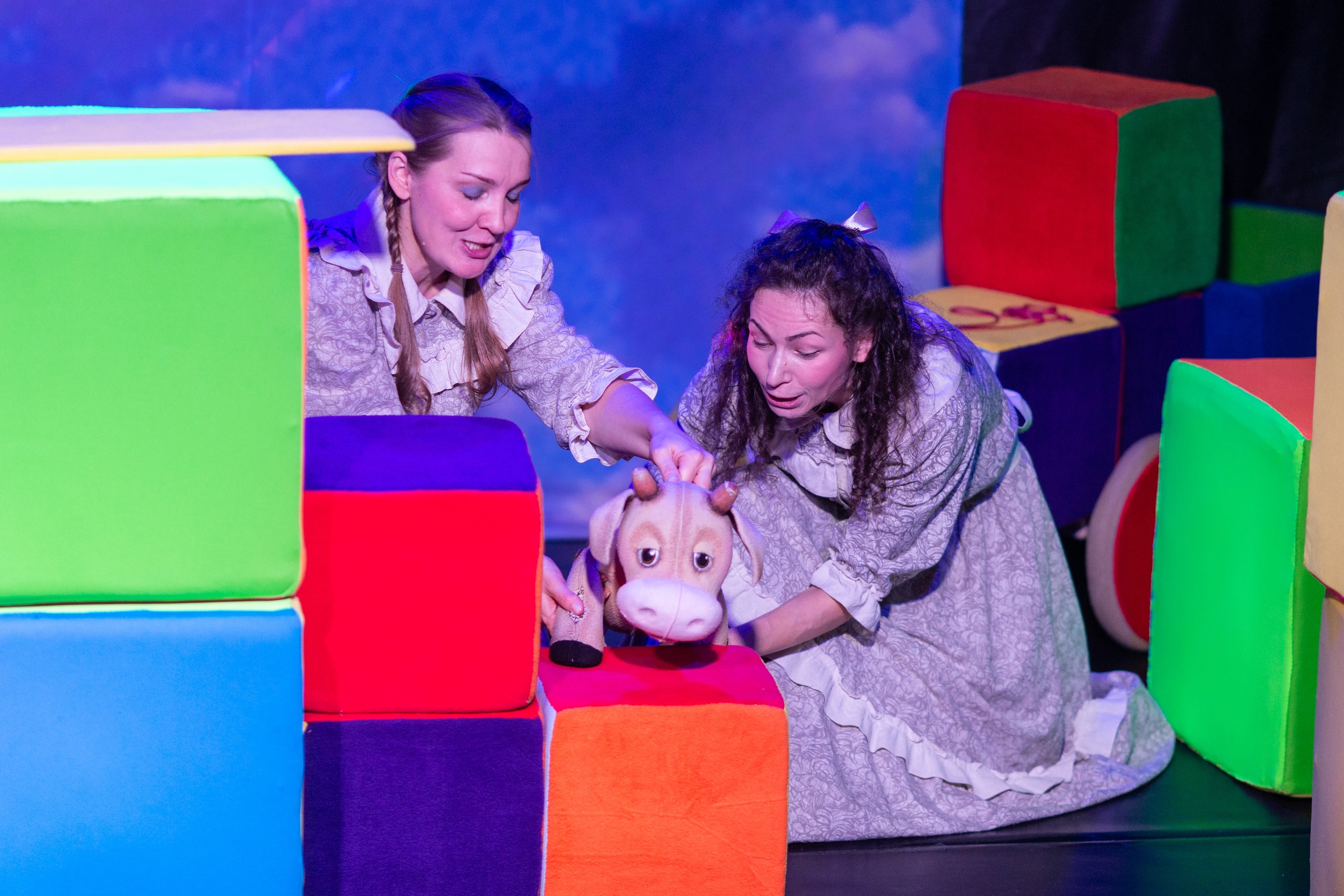 Вообразите, что во время программы «Игрушки» можно лежать на полу, ходить рядом с актерами, строить башню из подушек, прыгать и переживать вслух вместе с родителями. Наши куклы — бычок, слонёнок, зайка, кот , лягушата и даже грузовичок с нетерпением ждут встречи с маленькими зрителями.