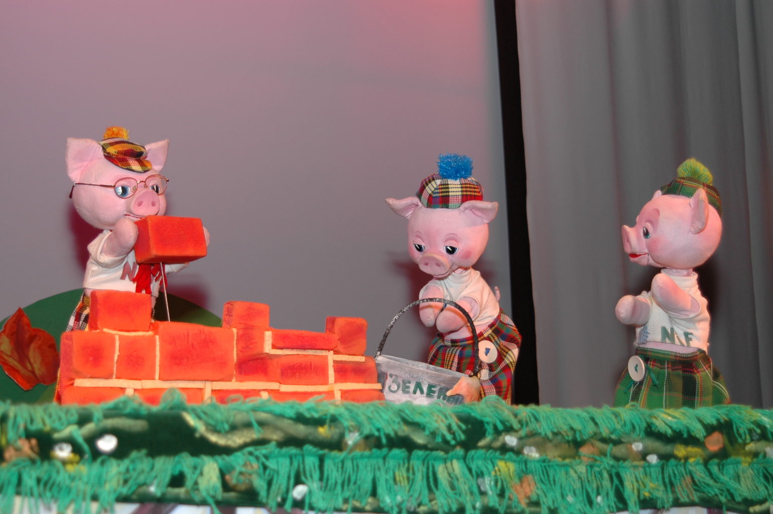 Знакомая всем сказка о трех неунывающих поросятах, строящих свой дом. У каждого поросенка свой подход к тому , из чего и как должен быть построен дом. Прав оказывается тот, чей дом получился самым крепким и надежным. И только дом, построенный основательно и с любовью, способен защитить от зубастого волка и других неприятностей. В спектакле много музыки и песен.