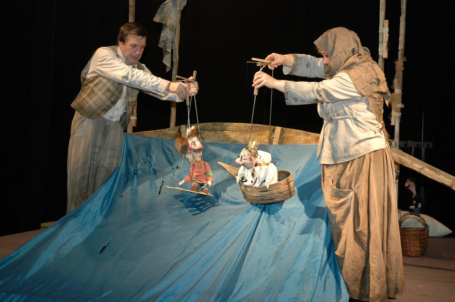 Спектакль построен как представление бродячих скоморохов, которые, скитаясь из деревни в деревню, рассказывают и показывают забавную и поучительную историю. В форме сказки, или сказа, насыщенного «словесным жемчугом» — северным говором и диалектными оборотами, спектакль создаёт мир, сочетающий народные традиции и приметы современности. Весёлый и незамысловатый рассказ как мужик проучил царя и всю царскую семью, выливается в серьёзные размышления о человеке и власти, о нравственном выборе для каждого человека.